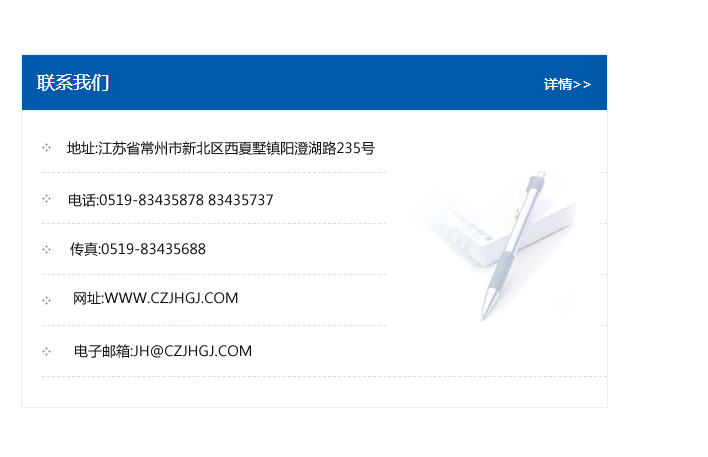 地址:常州市新北區友邦商務大廈1幢16、17層  電話:0519-85101652  傳真:0519-85112595  郵編:213022  網址:www.cz-jiayue_cn.sclskj.com  郵箱:xiajifengaa@163.com